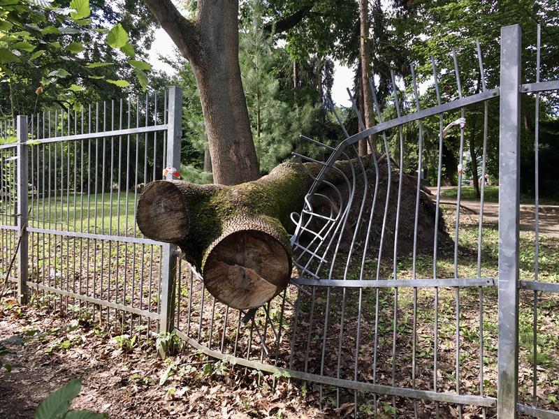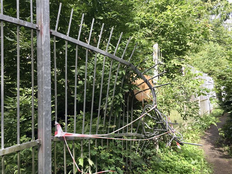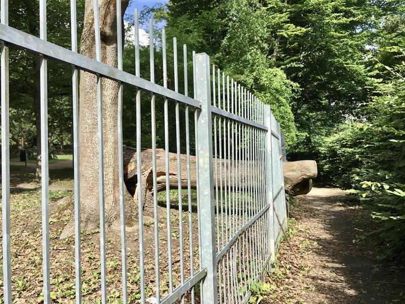 Wiatrołomy uszkodziły ogrodzenie Ogrodu Różanego, od strony alei Fałata. Nie dziś ani nie wczoraj. Lecz jeszcze w zimie. Dlaczego przy jednej z ulubionych tras spacerowych szczecinian - prowadzącej od parku Kasprowicza aż po Głębokie - nadal widać fatalne skutki przejścia potężnej wichury z pierwszych dni marca?