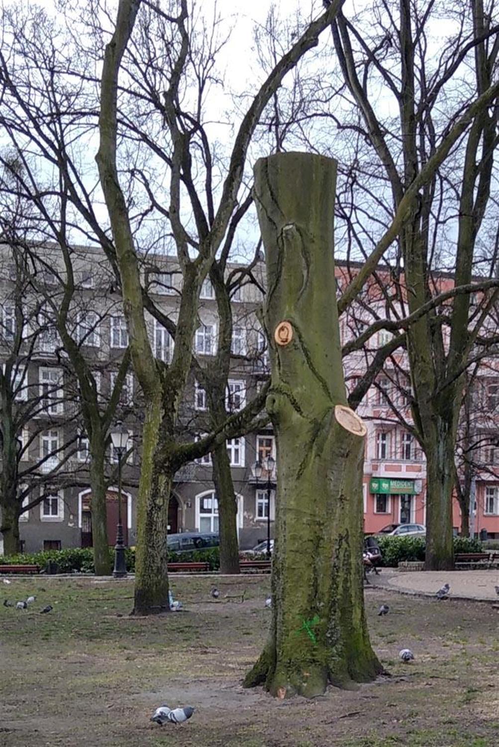 Potężne drzewo ogłowione w okresie ochronnym dla ptasich lęgów? Na dodatek na skwerze opodal węzła przesiadkowego "Kołłątaja"? To nie mogło umknąć uwadze miłośników szczecińskiej zieleni.