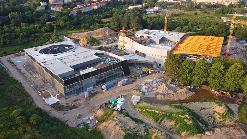 – Widowiskowy etap budowy za nami. Kilkanaście blisko 40-metrowych dźwigarów dachowych jest już na swoim miejscu. Aktualnie trwa montaż ostatnich płatwi drewnianych mających na celu usztywnienie całej konstrukcji. Ponadto na budynku wykonywane są ściany w obrębie klatek schodowych i w obrębie zjeżdżalni. Trwa montaż okablowania i kanałów wentylacyjnych – informuje Piotr Zieliński, rzecznik prasowy Fabryki Wody.