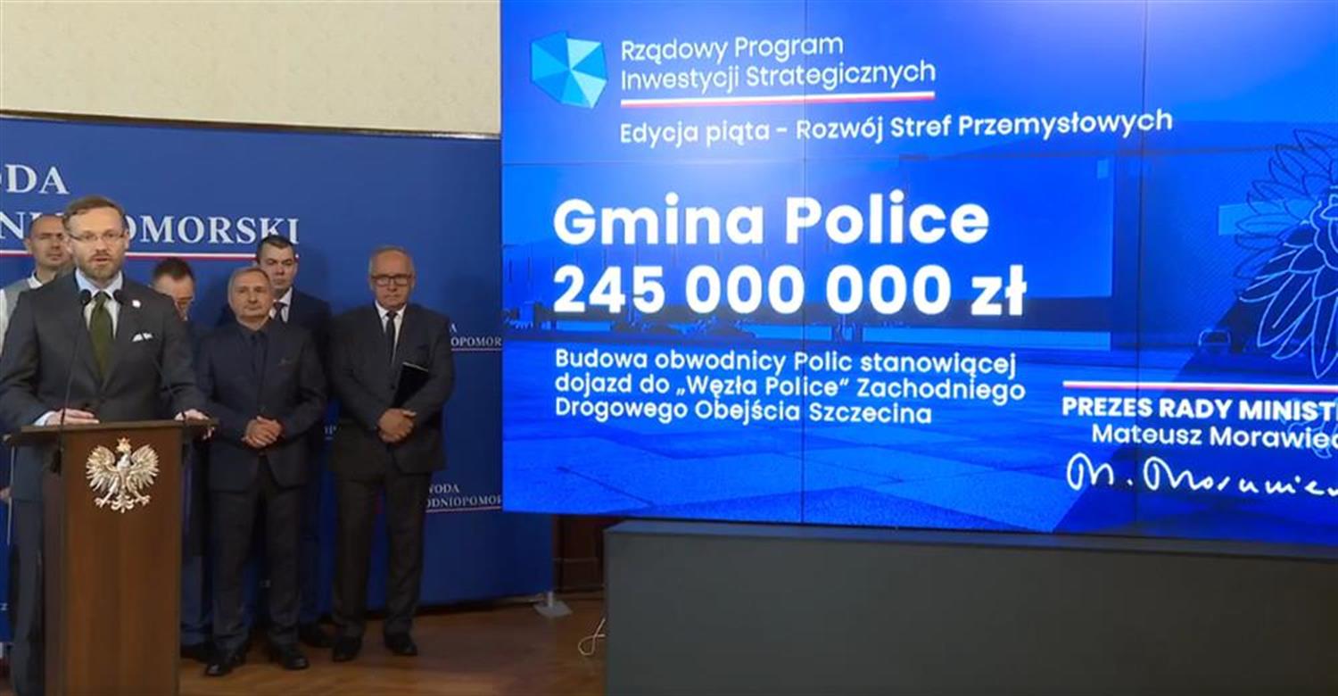 Prawie ćwierć miliarda złotych przyznano gminie Police z Rządowego Programu Inwestycji Strategicznych. Środki są przeznaczone na budowę obwodnicy Polic, stanowiącej dojazd do „Węzła Police” Zachodniego Obejścia Szczecina. To piąta edycja programu. Do samorządów w całym kraju trafi blisko 5 mld zł na rozwój stref przemysłowych.