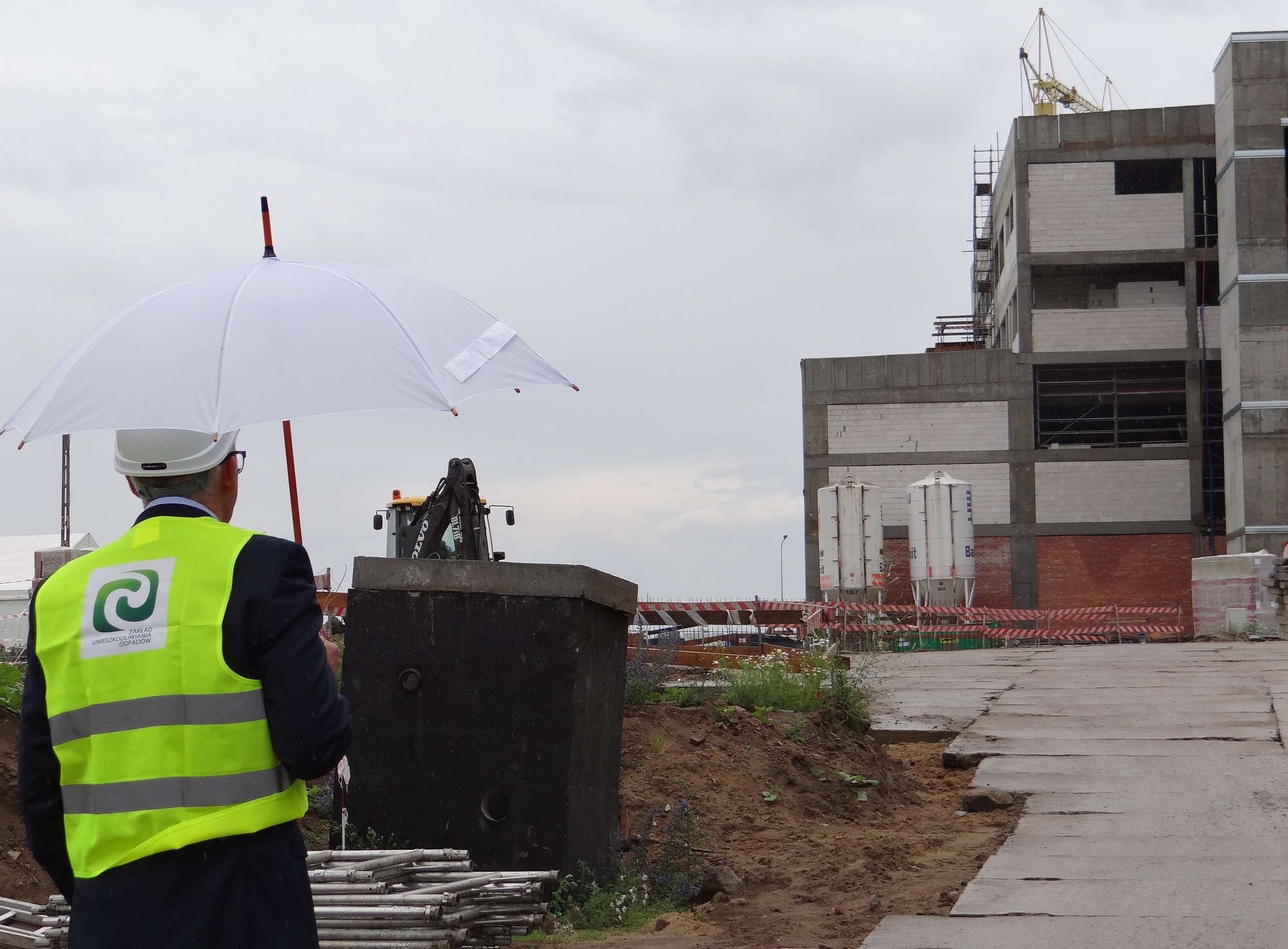 Byliśmy w środę na placu budowy. Bramy zamknięte na głucho, pozostawiony sprzęt, unieruchomione ciężarówki, koparki, spychacze i dźwigi, wszędzie materiały, a także urządzenia, które nie zostały jeszcze zamontowane na swoim miejscu. Krzątająca się teraz bez konkretnego celu po terenie nieliczna grupka pracowników kilku firm podwykonawczych. Do czasu wypowiedzenia umowy przez Mostostal roiło się tu od robotników. Przy inwestycji było ich zatrudnionych do tej pory w sumie około pięciuset. W takiej scenerii w niedokończonej hali kotłów Tomasz Lachowicz, prezes ZUO, odpowiadał w środowe popołudnie na pytania dziennikarzy podczas zwołanej przez siebie konferencji prasowej.