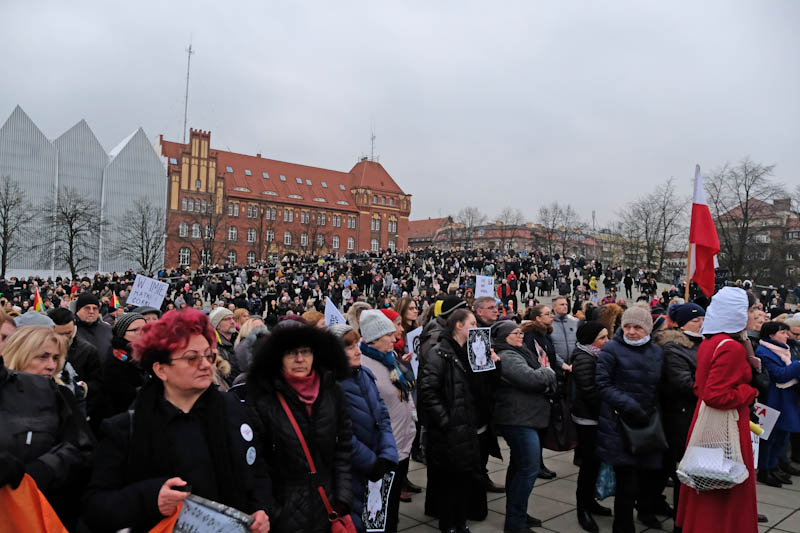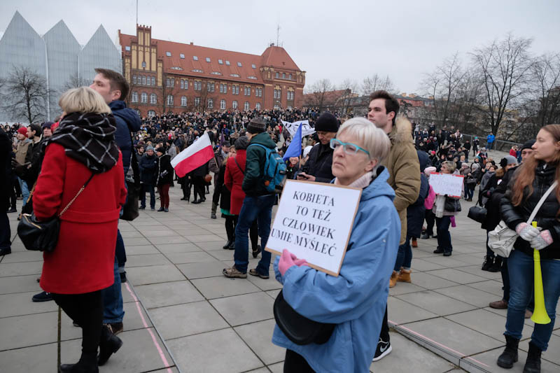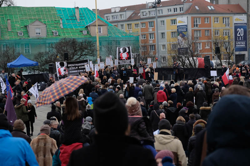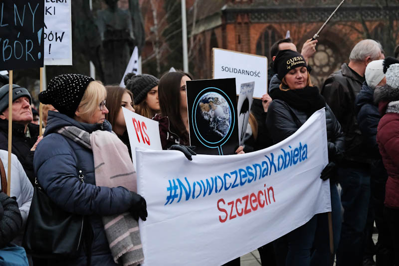 "Nie zadzieraj z Polką wściekłą, bo ci zrobi w kraju piekło", "Hipokryci, fanatycy, poczujecie gniew ulicy", "Bójcie się, patrzymy wam na ręce" - skandował w piątek po południu tłum na placu Solidarności w Szczecinie. To kolejne zgromadzenie i wystąpienie osób sprzeciwiających się zaostrzeniu prawa aborcyjnego. Na szczeciński happening, wspierający piątkową manifestację w Warszawie, przyszło około tysiąca kobiet i mężczyzn.