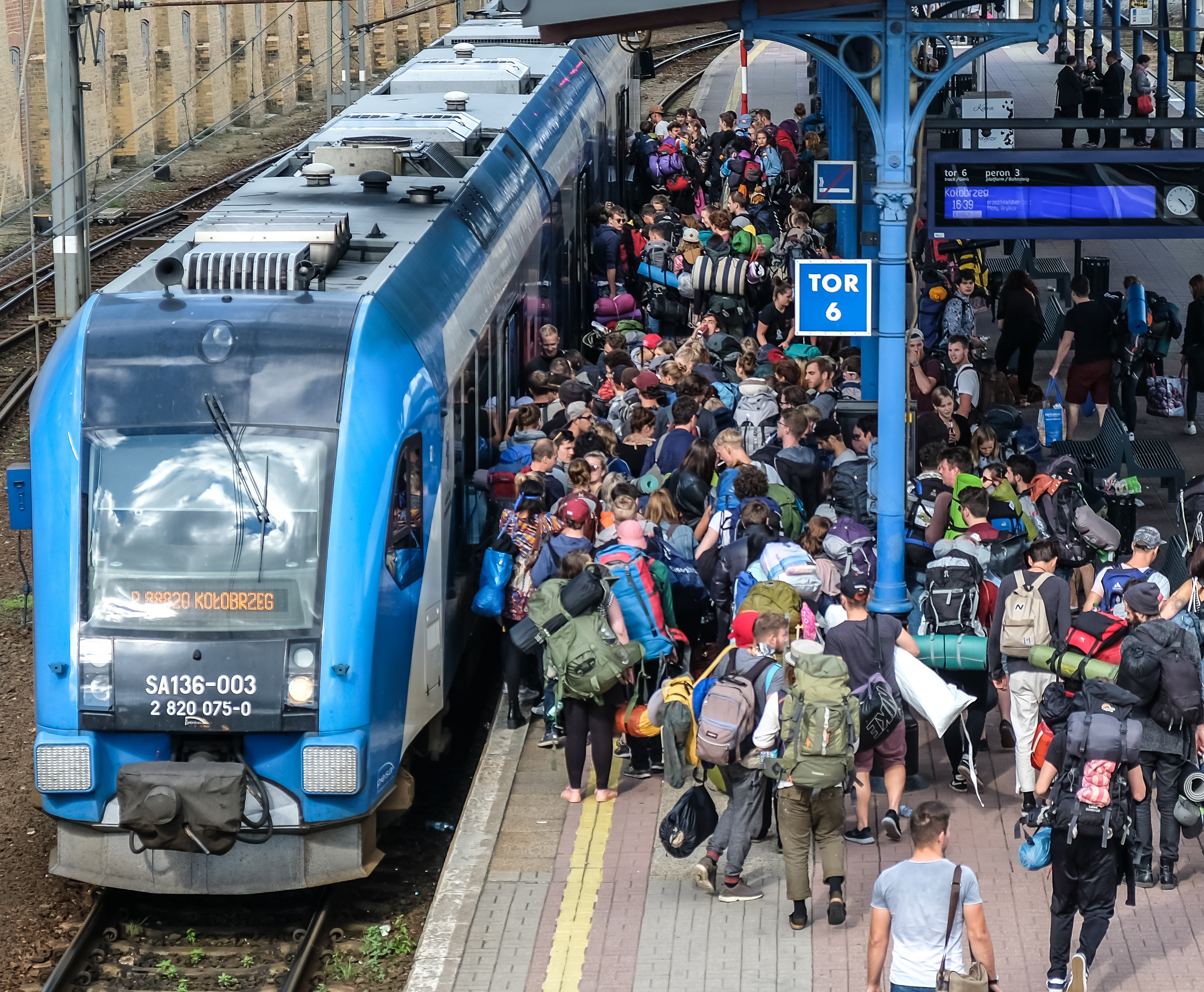 Na szczecińskim Dworcu Głównym widać, że zmieniają się kolejne wakacyjne turnusy. Jak przed laty chętni do podróży koleją dosłownie szturmują miejsca w pociągach. Sobotnia podróż do Kołobrzegu dla większości z nich nie będzie miłym wspomnieniem.