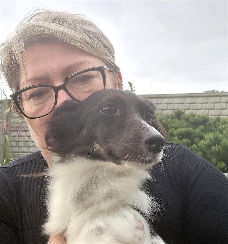 - Powiedziałyśmy sobie z córką wtedy: trzy psy w domu, to znajdzie się miejsce i dla czwartego. I pojechałyśmy po Miję. Była wówczas kruszyną, jaką wypatrzyłyśmy w kącie siedziby TOZ. Była tak wyniszczona i osłabiona, że nie chodziła, a nawet słaniała się siedząc. Przywiozłyśmy ją do naszego domu, ale faktycznie adoptowała ją jedna z naszych suczek: Nela. Zaopiekowała się nią, wylizywała, wszystkiego nauczyła. Wprawdzie Mija pozostała dość nieśmiałą „czarnołaciatą" psiną, która boi się mężczyzn i głośnych dźwięków. Ale z nami pozostała na zawsze: ze stałym miejscem na kanapie.
