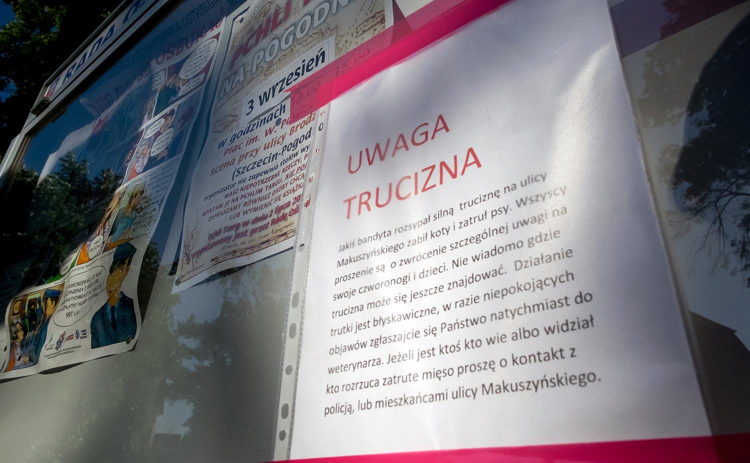 Ostrzeżenie mówi wszystko: „Jakiś bandyta rozsypał silną truciznę na ul. Makuszyńskiego. Zabił koty i zatruł psy. Wszyscy są proszeni o zwrócenie szczególnej uwagi na swoje czworonogi i dzieci. Nie wiadomo gdzie jeszcze trucizna może się znajdować. Działanie trutki jest błyskawiczne. W razie niepokojących objawów zgłaszajcie się Państwo natychmiast do weterynarza. Jeżeli jest ktoś, kto wie albo widział, kto rozrzuca zatrute mięso, proszę o kontakt z policją lub mieszkańcami ul. Makuszyńskiego".