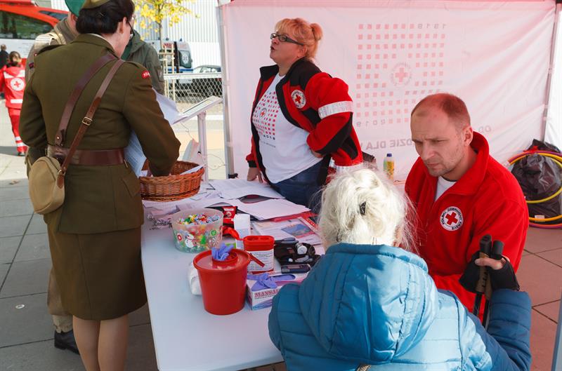 Polski Czerwony Krzyż zorganizował w środę (10 października) na placu Solidarności w Szczecinie festyn połączony z wystawą „Historia znana i niezapomniana na przestrzeni 100 lat”. To zapowiedź obchodów stulecia tej organizacji, przypadającego na przyszły rok. Podczas festynu można było wziąć udział w konkursie związanym z PCK, obejrzeć pokazy udzielania pierwszej pomocy i animacje grupy rekonstrukcyjnej. Chętni przechodnie korzystali też z możliwości oddania krwi w mobilnym ambulansie.