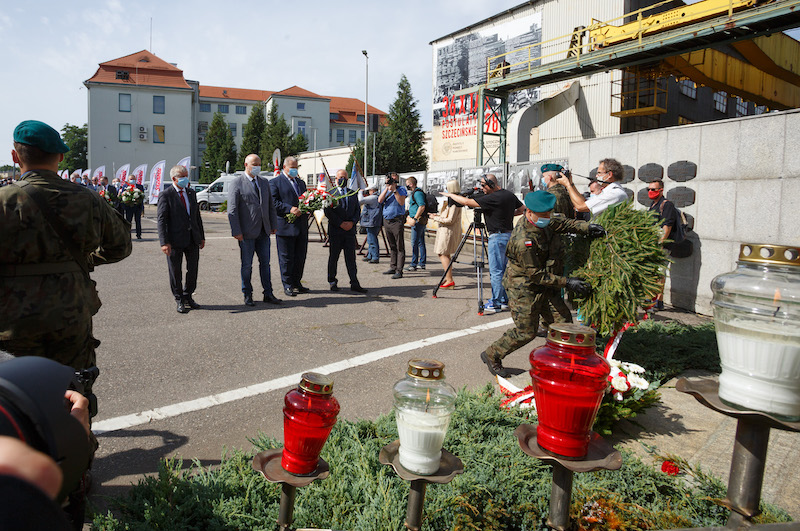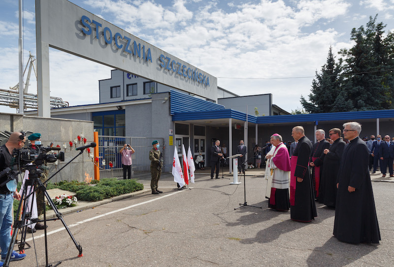 Podczas głównych uroczystości przy bramie Stoczni Szczecińskiej metropolita poprowadził modlitwę Anioł Pański. Udział w nich wzięli m.in. przedstawiciele władz centralnych, wojewódzkich i samorządowych, europarlamentarzyści i parlamentarzyści, związkowcy, reprezentanci służb i mieszkańcy.