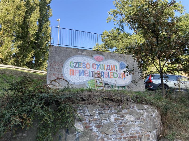 Mozaika z napisem "Cześć sąsiedzi" w języku polskim i ukraińskim została odsłonięta w sobotę (21 września) z inicjatywy stowarzyszenia Oswajanie Miasta w ramach "Święta Śródmieścia". Powstawała ona podczas warsztatów w kwietniu 2024 roku, a jej elementy wykonały osoby z różnych krajów. „Cześć sąsiedzi” powstało z myślą o budowaniu więzi społecznych i międzykulturowych w lokalnej społeczności. Projekt mozaiki został przygotowany przez Adę Krawczak, absolwentkę Akademii Sztuki w Szczecinie. Pracę umieszczono na murze przy ulicy Ściegiennego na Turzynie, nieopodal niepublicznego, wielokulturowego przedszkola Maleńka Kraina.
