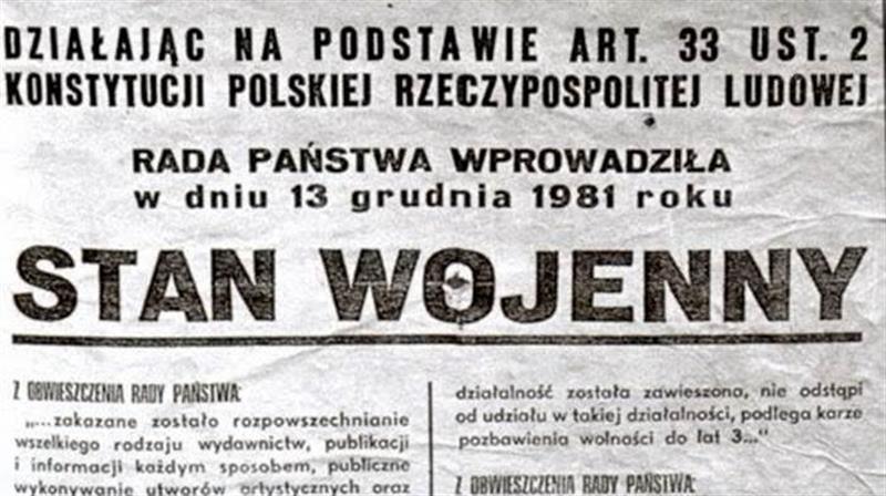 O stanie wojennym społeczeństwo dowiedziało się ze specjalnego przemówienia Wojciecha Jaruzelskiego stojącego wówczas na czele WRON oraz wojska – pełnił on również funkcję I sekretarzem Komitetu Centralnego Polskiej Zjednoczonej Partii Robotniczej.