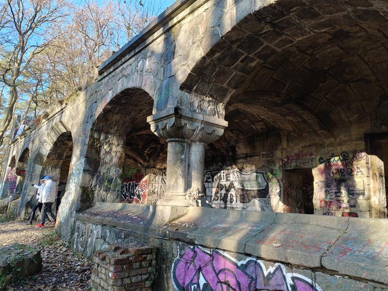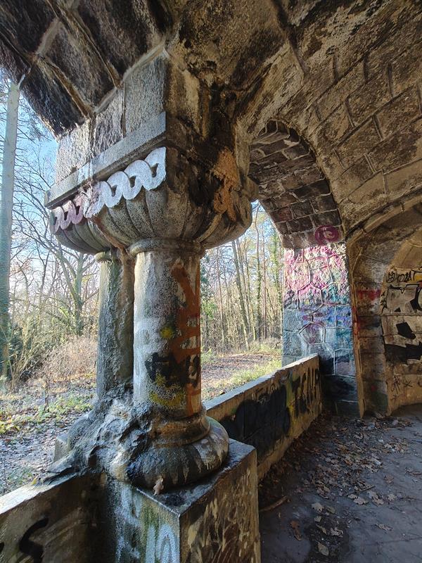 Dawniej ze zniszczonej wieży rozkradano wszystko. Nawet cegły. Teraz, gdy ruiny zostały uporządkowane i oczyszczone, usunięto gruz i samosiejki, gdy odsłonięto architektoniczne detale i oryginalną posadzkę, tak zwani zbieracze zaczęli zabierać „na pamiątkę” płytki z mozaiki. Przygarniali – niestety – nie tylko detale. W połowie lat 90. ubiegłego wieku ktoś zabrał nawet jedyną z ocalałych po wojennej zawierusze alegorycznych rzeźb – dłuta berlińskiego artysty Ludwiga Manzla – jakie niegdyś zdobiły podstawę wieży Quistorpa. Dziś już nie wiadomo, czy chodziło o figurę uosabiającą handel czy przemysł. Jedyny ślad to kiepskiej jakości fotografia, ilustrująca siedzącego mężczyznę w todze, u którego boku stoi nagi chłopiec. W karcie zabytku nie ma informacji o detalach, które pozwoliłyby na odnalezienie owej zaginionej rzeźby.