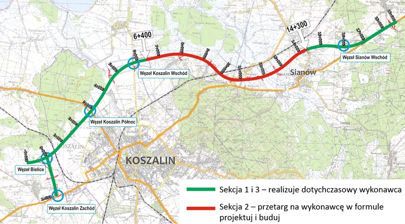 Pozostałe odcinki obwodnicy Koszalina i Sianowa długości 12,2 km w ciągu drogi ekspresowej S6 ma zakończyć w przyszłym roku, w ramach pierwotnego kontraktu, dotychczasowy wykonawca - konsorcjum firm: Porr i Polbud-Pomorze.