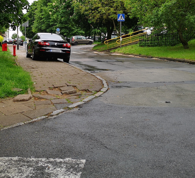 chodnik dzbanie rozpadł się właśnie przez parkujące auta, a nie przez pieszych.. utrudnia przejście, utrudnia przejazd, ogranicza widoczność przejścia i skrzyżowania, jak dla mnie do odholowania