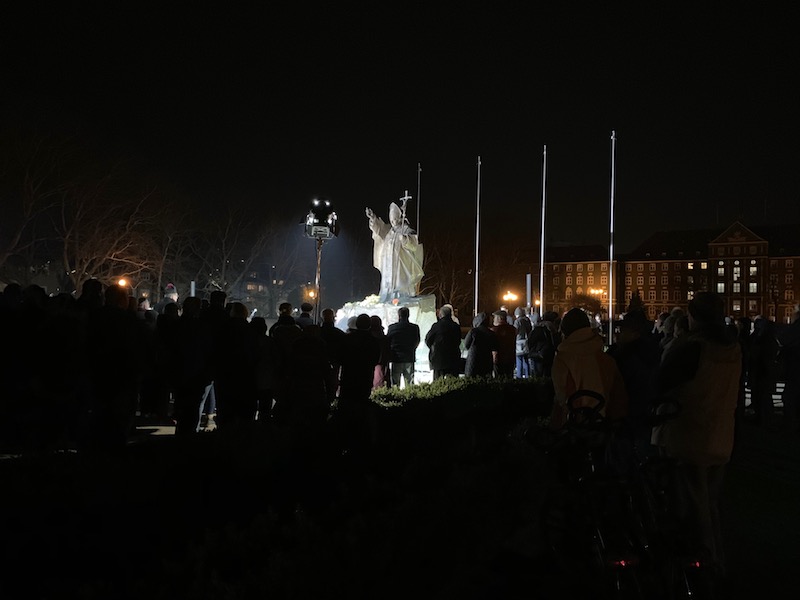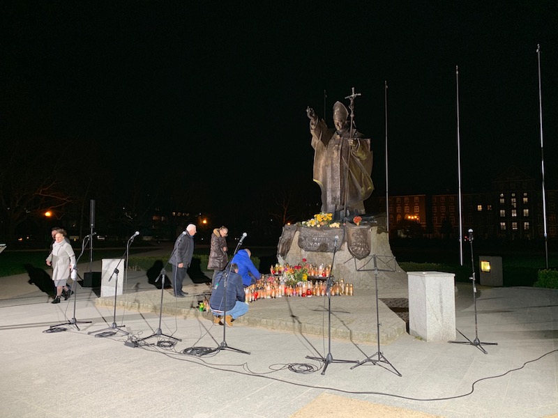 Celem wtorkowego wydarzenia, zorganizowanego przez ks. Grzegorza Adamskigo z parafii pw. Świętej Rodziny w Szczecinie oraz młodzież z XIII LO, było upamiętnienie życia i pontyfikatu papieża Polaka. Zebrani mogli zapalić znicze przed pomnikiem, posłuchać fragmentów wspomnień z osobistych notatek Karola Wojtyły, a o 21.37 wspólnie odśpiewać "Barkę" - ulubioną papieską pieśń.