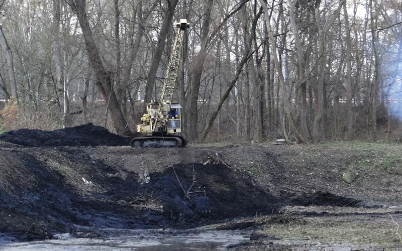 W ub. tygodniu informowaliśmy o usuwaniu osadów dennych z dwóch leśnych zbiorników, pełniących rolę retencyjnych. Prace z użyciem ciężkiego sprzętu są wykonywane na zlecenie Zakładu Usług Komunalnych. Pierwsza ich faza polegała na osuszeniu dna. Kolejna na usunięciu powierzchniowej warstwy osadów.