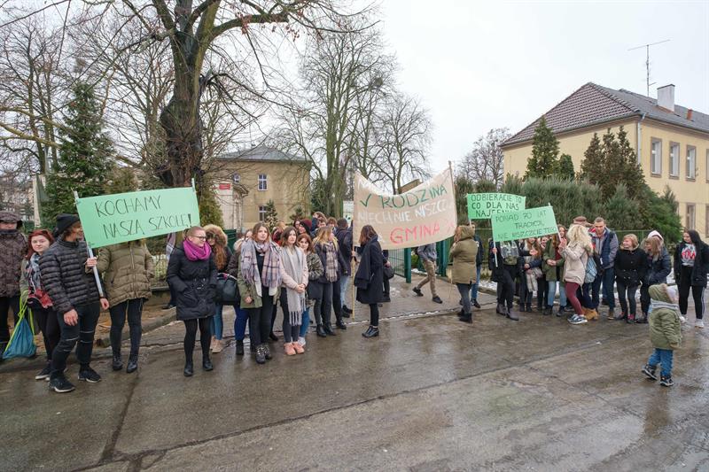 Uczniowie chcą walczyć o swoją szkołę. Na zdjęciu wtorkowa pikieta przeciw likwidacji CEO.