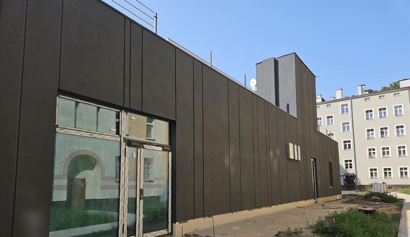 W pomieszczeniach przyszłego Centrum Aktywności Lokalnej oraz żłobka miejskiego trwają także prace wykończeniowe, w tym malowanie, układanie wykładzin, płytek oraz montaż ścianek przesuwnych.