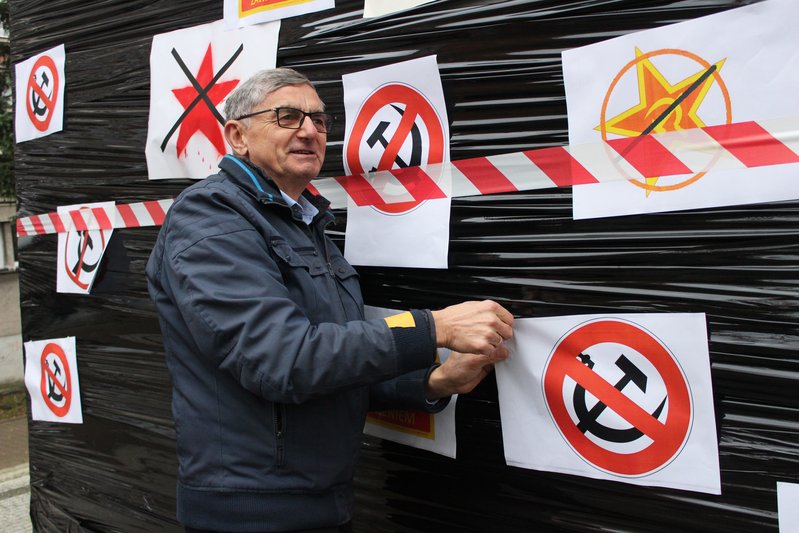 – Uważamy, że w wolnej Polsce takie monumenty, wznoszone na cześć okupanta sowieckiego, powinny być likwidowane jako świadectwo hańby – mówił Mirosław Berezowski ze Stowarzyszenia Kresy Wschodnie, organizator wiecu. – Dlatego dziękuję tym, którzy tu dziś przyszli, by zaprotestować, gdyż to oznacza dla mnie państwa odwagę, by wyrazić protest. Nie mam żadnej wątpliwości, że ten pomnik powinien zostać usunięty jak najprędzej.