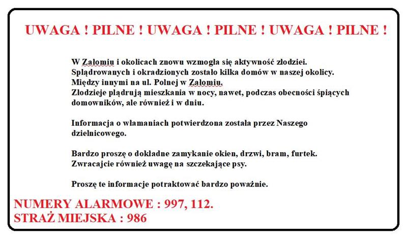 Na zdjęciu: Sołectwo Czarna Łąka wywiesiło informację o włamaniach m.in. w mediach społecznościowych.