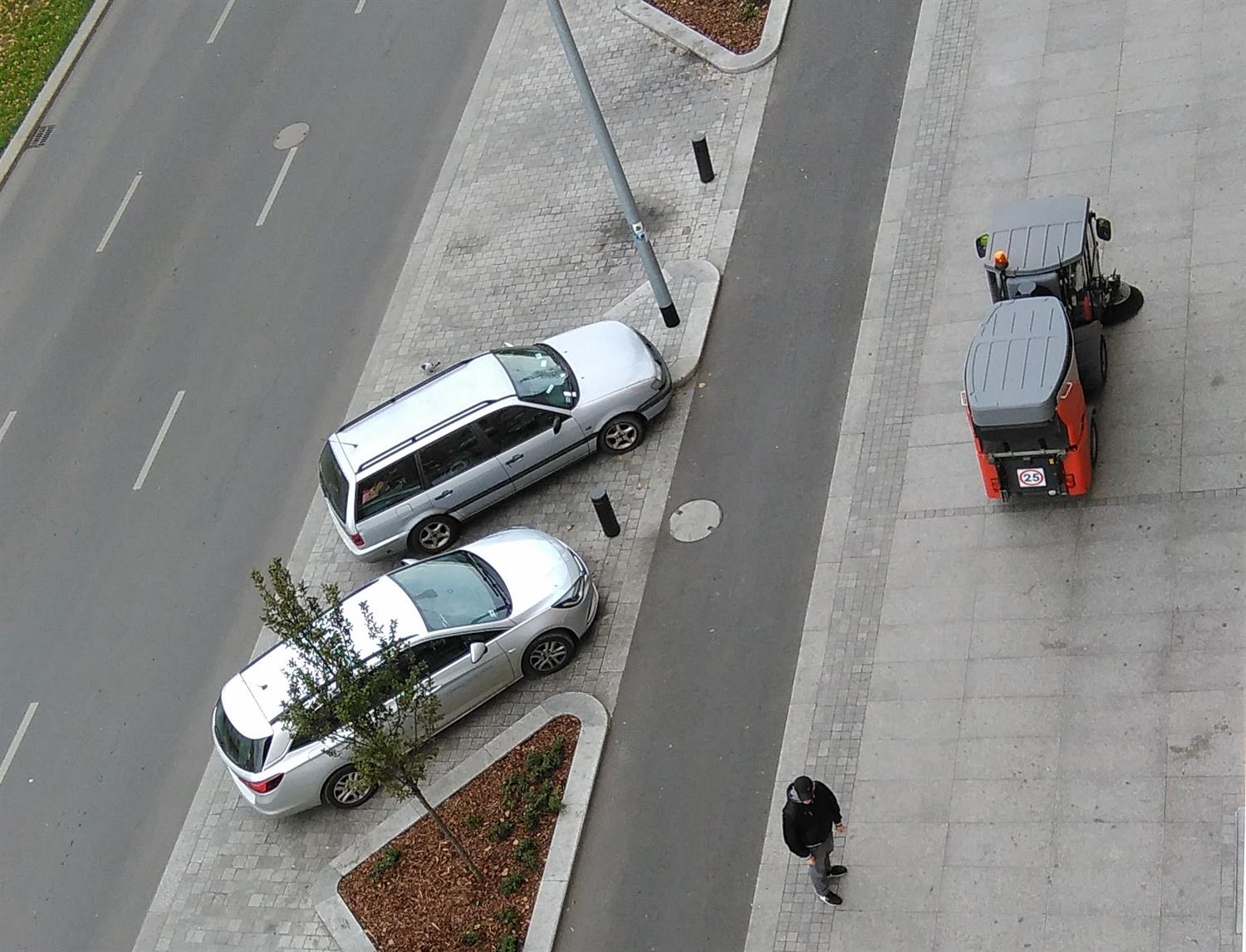 Bezprawnie, ale też bezskutecznie - jak widać na załączonym obrazku. Od soboty oczyszczaniem chodników al. Niepodległości zajmuje się już sprzęt działający na zlecenie ZDiTM. Oby dotarł również w inne rejony miasta, gdzie chodniki - podobnie jak w centrum - aż lepią się od brudu.
