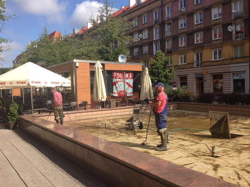 Trwa czyszczenie fontann upiększających al. Jana Pawła II na odcinku pomiędzy placami Grunwaldzkim i Lotników. Jedna z nich jest już czysta. Druga w trakcie pucowania - nie ma już w niej wody. A trzecia będzie gotowa na czwartek. Nareszcie. Zdaniem naszych Czytelników, woda w zbiornikach była brudna, a jej zapach nie umilał konsumpcji klientom pobliskich kawiarni.