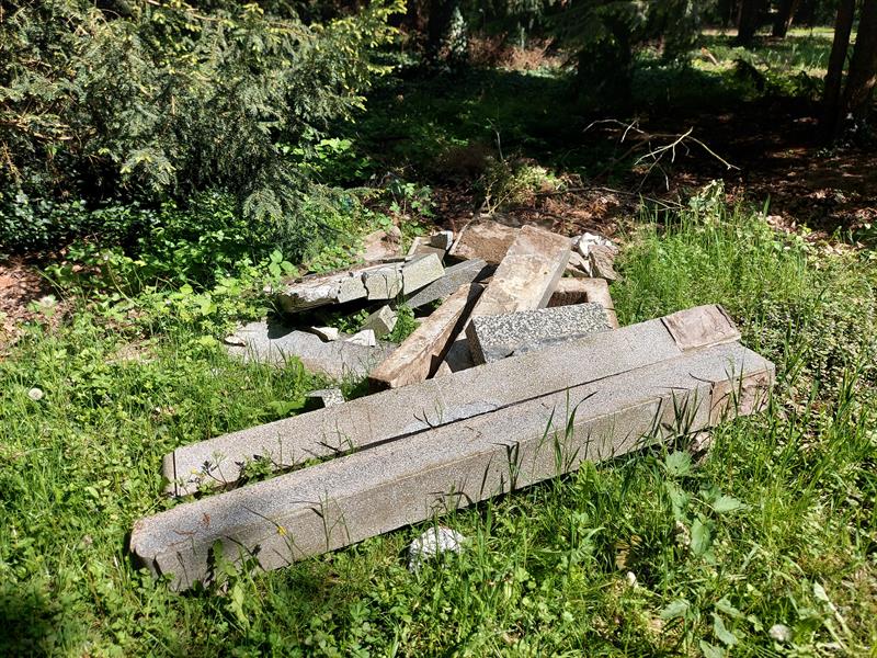 Nawet w starej części Cmentarza Centralnego można natrafić na dzikie gruzowiska. Czyli miejsca, w których kamieniarze - bezmyślnie idąc na łatwiznę - pozbywają się elementów demontowanych lub zniszczonych nagrobków. Porzucając je w miejscach osłoniętych krzewami.