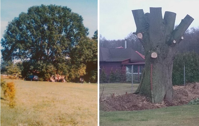 Ustawa o ochronie przyrody ta przed i po 1.01.2017 r. ZABRANIA przycinkę drzewa zmniejszającą koronę drzewa o więcej niż 30%. Urzędnicy Gminni powinni wykazać się starannością albo skutecznością wyegzekwowania prawa, a dziennikarz rzetelnością.
