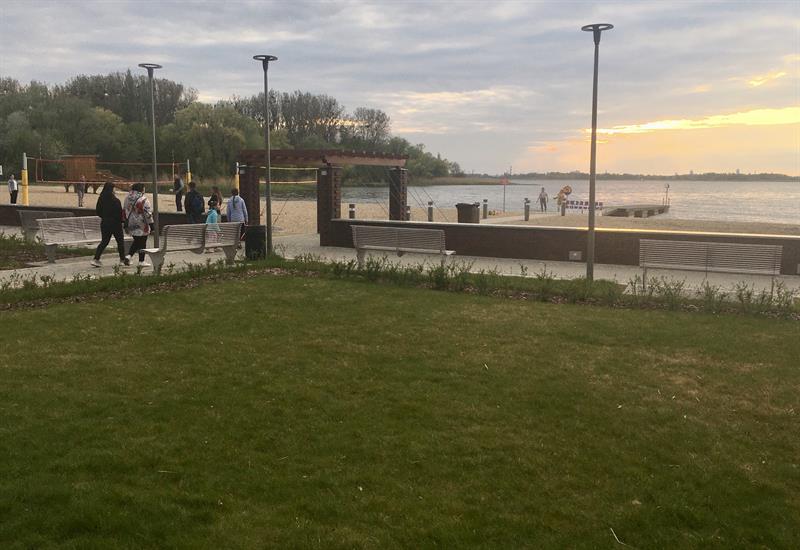 Teren kąpieliska jest bezpieczny, bo monitorowany i ochraniany całodobowo, a też ogrodzony i oświetlony. Efektowna iluminacja – zwłaszcza wzdłuż promenady prowadzącej ku wodzie – zachęca, aby na miejskiej plaży spędzać jak najwięcej czasu. Niestety, jest czynna wyłącznie w godz. 10-20. Co wyklucza obserwowanie wschodów i zachodów słońca z terenu miejskiego kąpieliska.