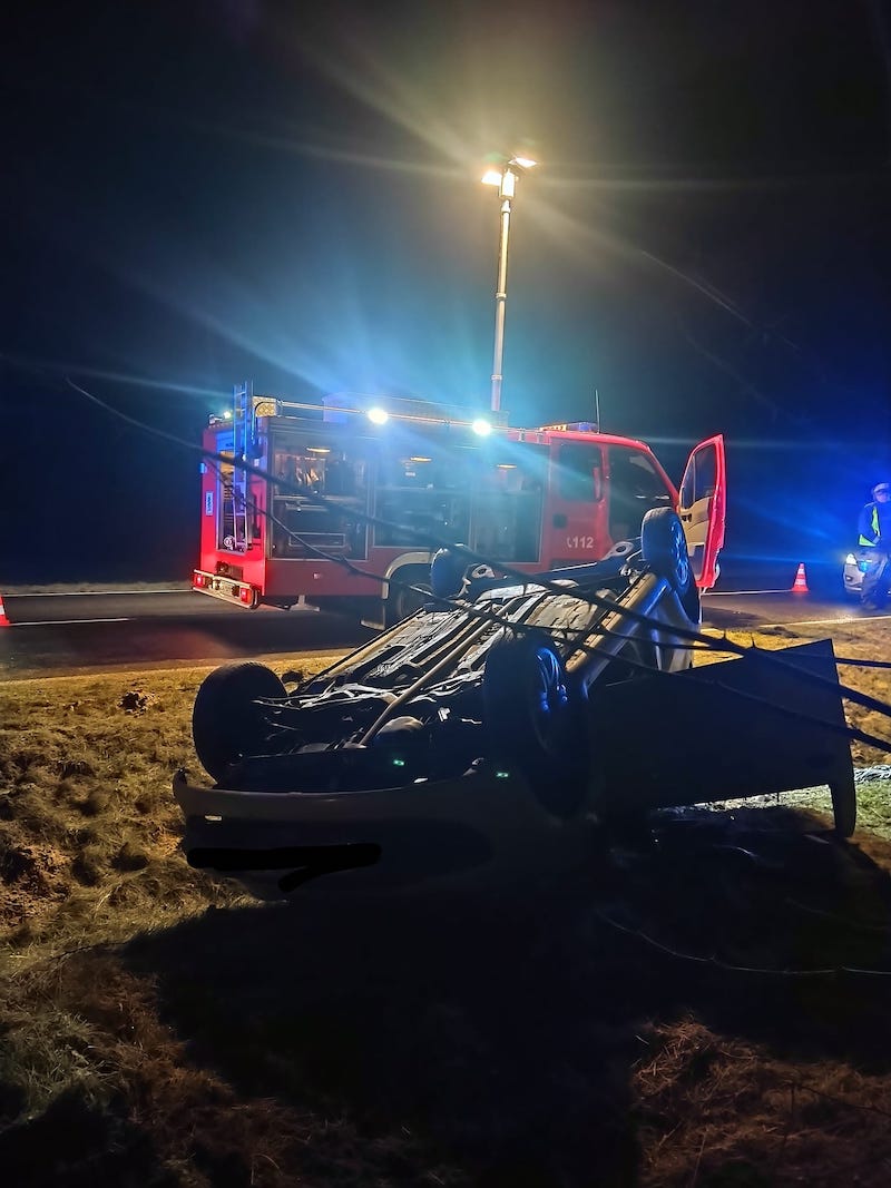 Na drodze wojewódzkiej nr 142 tzw. betonce doszło we wtorkowy wieczór do poważnie wyglądającego zdarzenia drogowego. Na 10. kilometrze drogi dachował citroen.