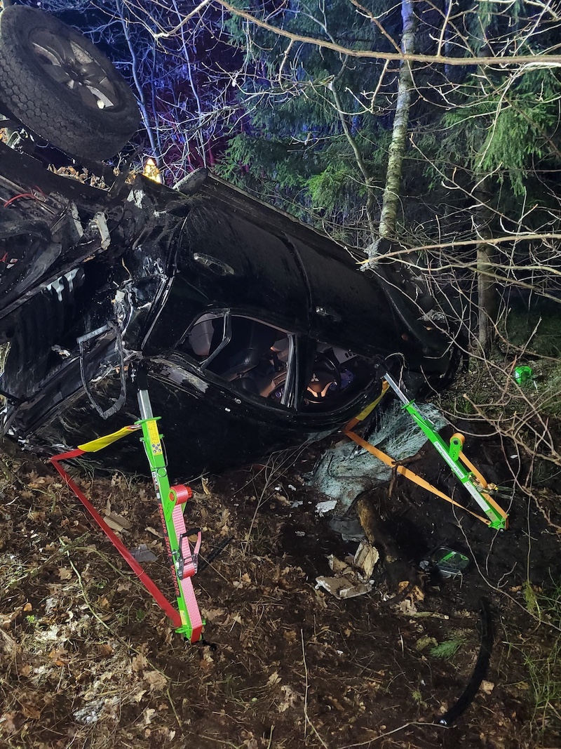 W sobotę wieczorem, na drodze wojewódzkiej numer 111, w okolicach miejscowości Kąty (powiat goleniowski), doszło do dachowania samochodu osobowego. Autem, które w wyniku utraty przez kierowcę panowania nad pojazdem wylądowało w pobliskim rowie, podróżowały trzy osoby.