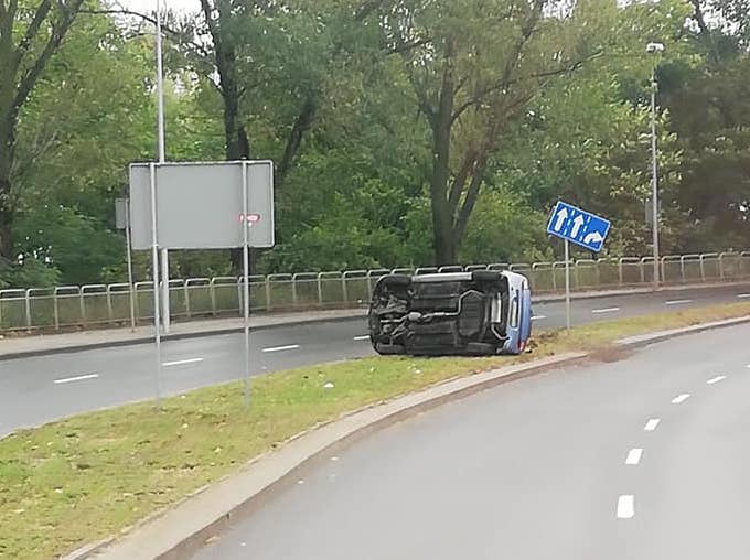 Prawdopodobnie nieuwaga kierowcy, fatalna aura oraz nadmierna prędkość doprowadziły do dachowania samochodu na ul. Gdańskiej w Szczecinie, w kierunku Dąbia. Na szczęście, w groźnie wyglądającym zdarzeniu nikt nie został ranny.