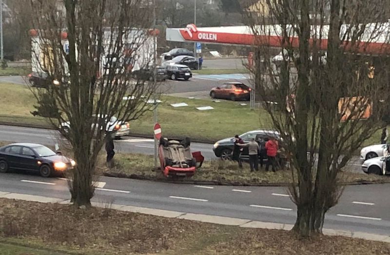 W niedzielne popołudnie (16 stycznia) na ul. Bogumińskiej dachował samochód osobowy. Do zdarzenia doszło na wysokości stacji paliw Orlenu. Auto wylądowało na trawniku w pasie rozdzielającym w tym miejscu jezdnię. Ze wstępnych informacji policji wynika, że nikomu nic się nie stało.