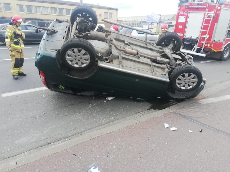 Samochód osobowy dachował na ul. Gdańskiej w Szczecinie w piątkowe popołudnie. Wypadek miał miejsce przed godz. 17 na nitce jezdni w kierunku centrum miasta na wysokości zabudowań Bulk Cargo Port Szczecin.
