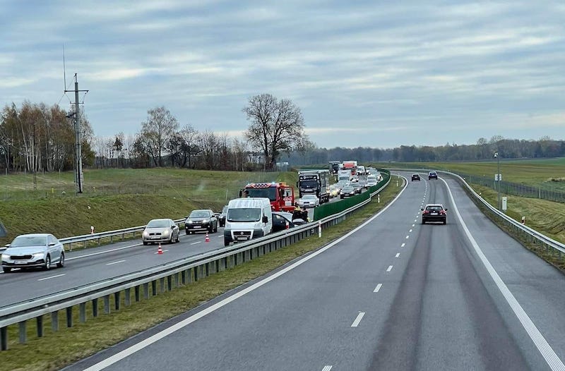 Na drodze interweniują służby. Występują utrudnienia - przejazd w kierunku Szczecina został zwężony do jednego pasa. Z problemami trzeba liczyć się do ok. g. 11.30.