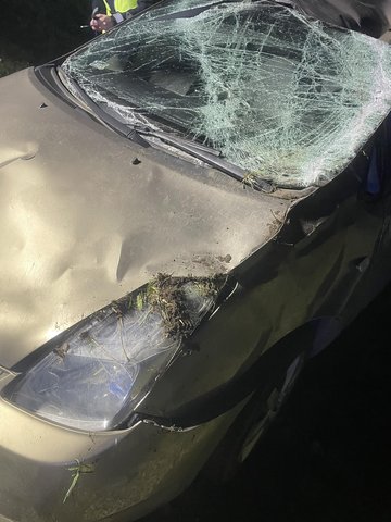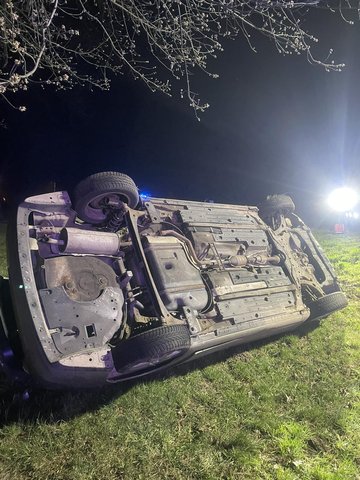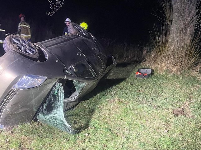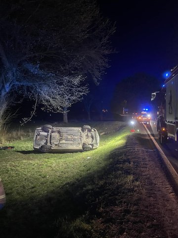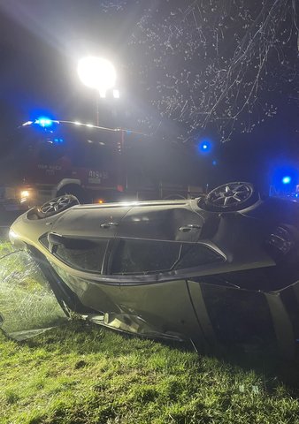 Samochód osobowy zjechał tam z drogi na pobocze i dachował.