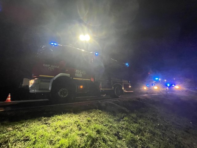 Poszkodowana została jedna osoba, którą karetka pogotowia zabrała do szpitala. Na miejscu oprócz policji i pogotowia interweniowali też druhowie z Ochotniczej Straży Pożarnej Recz.