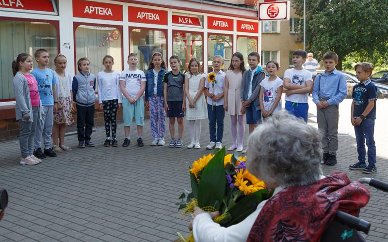 - W naszej szkole były wieczornice, gdzie pani Danuta przychodziła, jest ważną osobą dla naszej społeczności. Jesteśmy zżyci z patronką naszej szkoły, jesteśmy w kontakcie telefonicznym - opowiadała Beata Wawrynowicz z SP nr 14. - Dwa dni temu rozmawialiśmy, przesyłaliśmy buziaczki, mówiliśmy, że dziś będziemy. Pani Danuta towarzyszy nam już od samego wejścia do naszej szkoły, wisi jej portret, jest jej historia. Są lekcje wychowawcze, na których opowiadamy, co o ona przeszła, i jakie szczęście mają uczniowie, że żyją bez wojny, mogą uczyć się w spokoju.