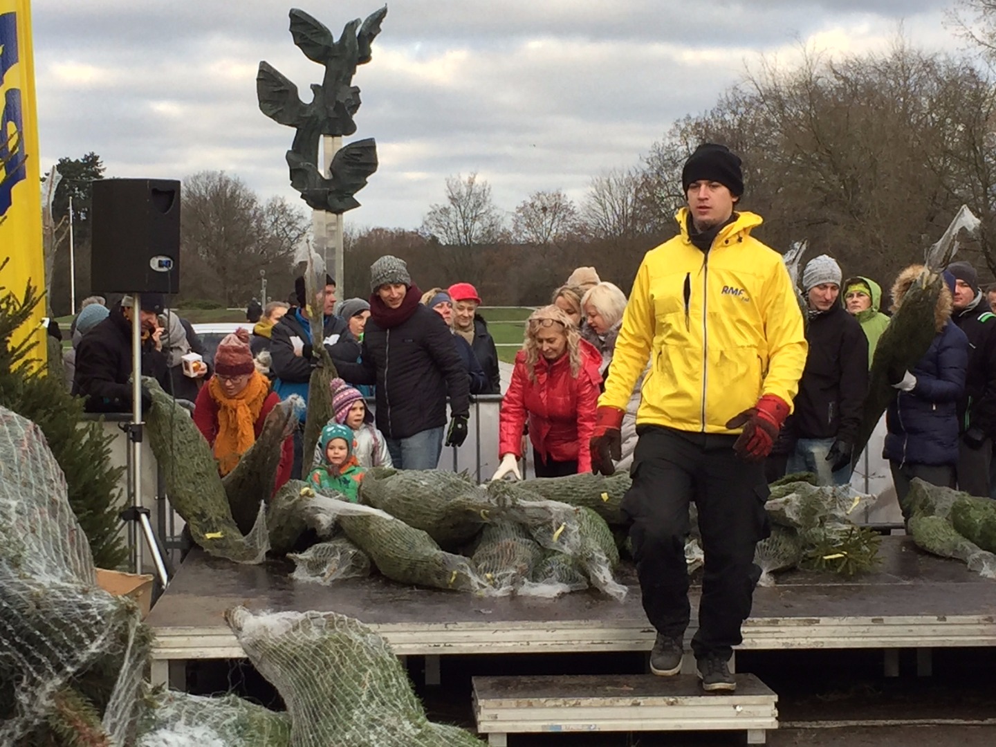 Na parkingu przy ul. Piotra Skargi przy dźwiękach muzyki i kolęd śpiewanych przez samych zebranych na urządzonej naprędce miniestradzie ruszyła w czwartek doroczna akcja dziennikarzy i pracowników Radia RMF organizowana w 12 największych miastach kraju. To ich gest i prezent adresowany do najbiedniejszym, najuboższych. W każdym z miast w tym roku rozdadzą po ponad tysiąc choinek.