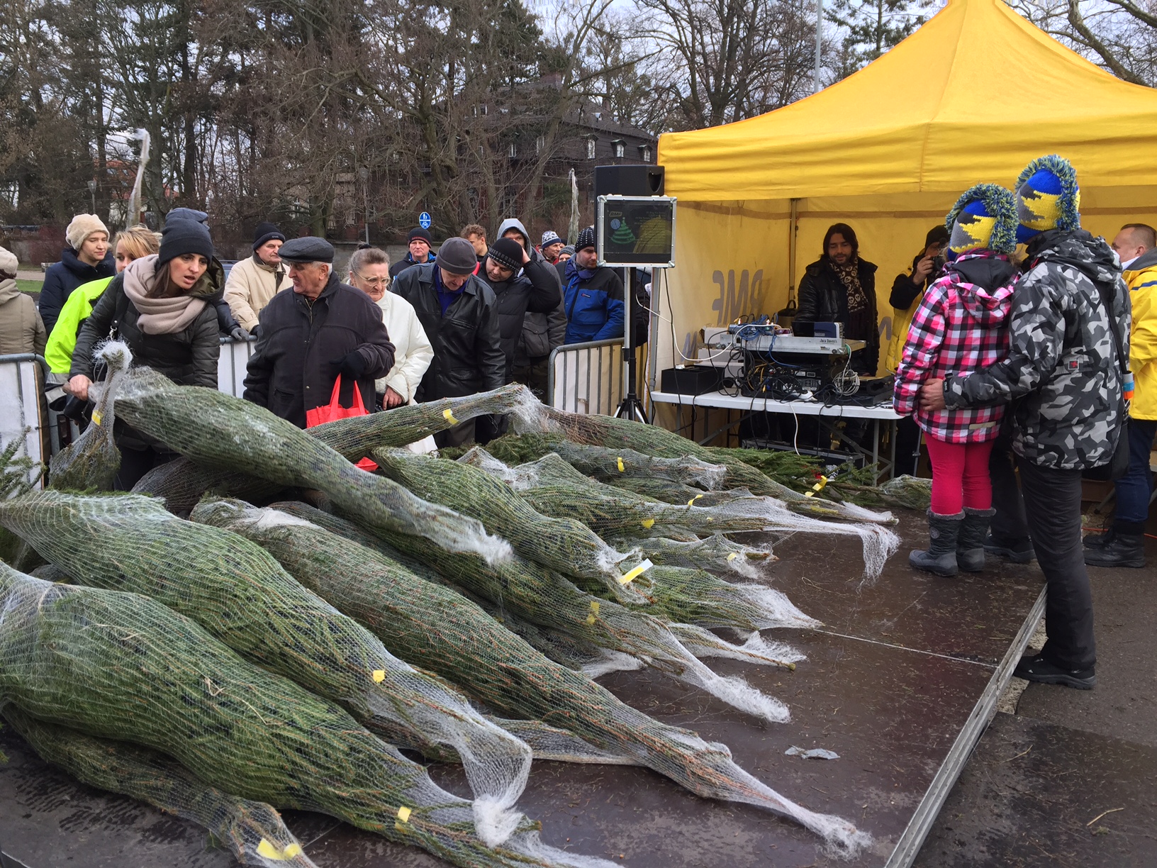 Kto żyw ruszył w czwartek przed południem na szczecińskie Jasne Błonia i karnie ustawił się w kolejce po świerkowe żywe drzewko na święta.