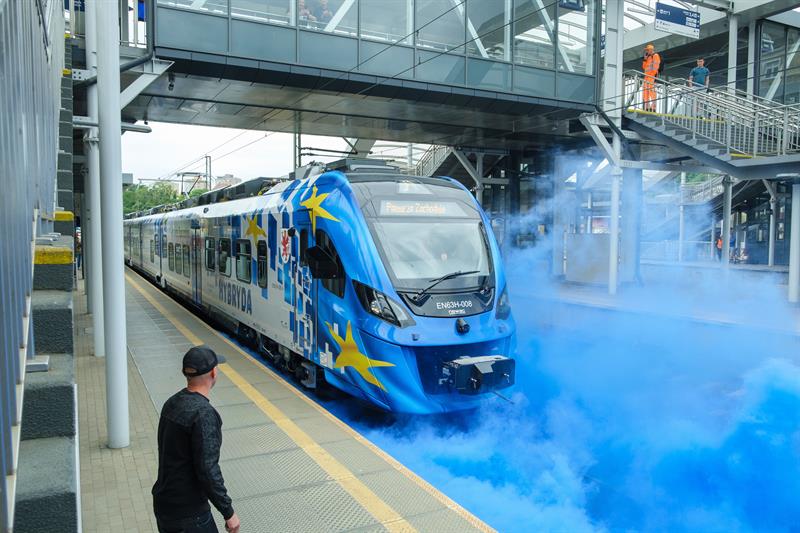 Kolejny pociąg z napędem elektryczno-spalinowym wyruszył we wtorek na zachodniopomorskie szlaki. To już ósma hybryda zakupiona przez samorząd województwa. Wygodna, nowoczesna, przyjazna środowisku. I z nietypowym malowaniem nawiązującym do Unii Europejskiej. Właśnie ze względu na unijne gwiazdki na poszyciu jeszcze przed oficjalną prezentacją przylgnął do niej przydomek „Gwiazda". W swój pierwszy kurs wyruszyła ze Szczecina do Kołobrzegu.