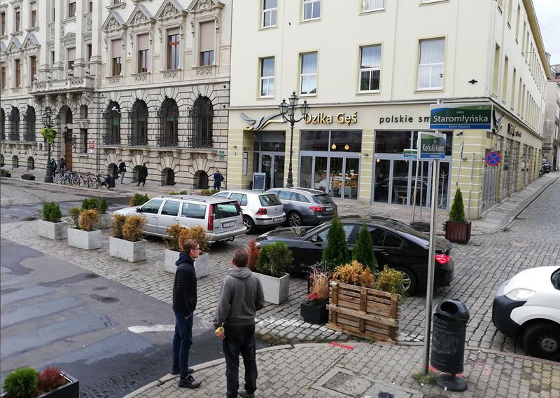 Zarówno obecny, jak i poprzednie warianty prototypowe wyznaczały miejsca dostaw dla pobliskich biur i lokali. Z każdej strony placu. Jedno z nich – od sierpnia – znajduje się tuż za skrzyżowaniem ul. Staromłyńskiej z Łaziebną, przy „Dzikiej Gęsi”. Jednak – jak pokazuje codzienna praktyka – nie zajmują go pojazdy dostawcze. Zawładnęli nim kierowcy samochodów osobowych. Nie dość, że blokują wjazd dostawcom, to jeszcze parkują na wysokości skrzyżowania, utrudniając skręt w ul. Łaziebną samochodom o szerokim rozstawie osi, nie tyko półciężarówkom.