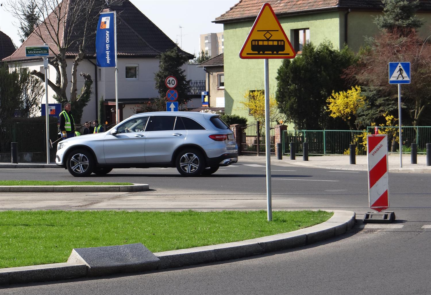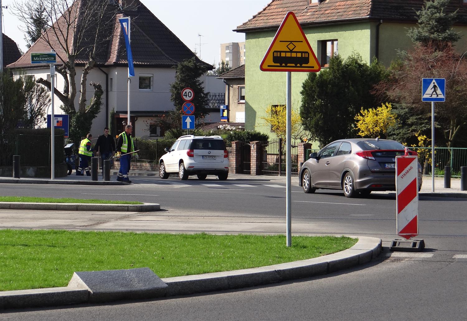 Od kilku tygodni taki oto obrazek na centralnej wyspie nowego ronda u zbiegu ulic Mickiewicza, Wernyhory, Żołnierskiej i Reduty Ordona w Szczecinie. Kamienne bloki krawężników naruszone po zajechaniu fragmentu wyspy - co widać po śladach kół w trawniku - przez ciężki sprzęt, ewentualnie samochód dostawczy bądź ciężarówkę. I - tradycyjnie - ustawiony na jezdni pachoł tuż przed dojazdem do torowiska tramwajów. Znak, że zanosi się znów na dłuższą prowizorkę nim dojdzie do naprawy. ©℗