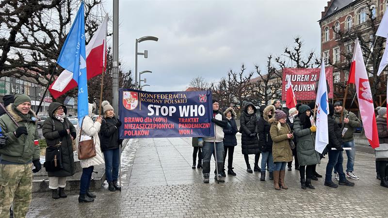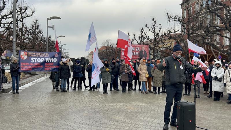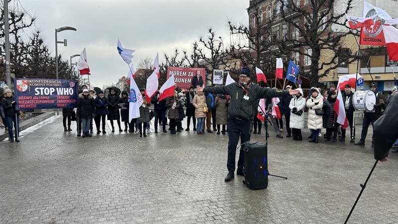 Pod hasłem „Stop WHO” odbyła się w sobotę (20 stycznia) na placu Adamowicza w Szczecinie manifestacja zorganizowana przez Konfederację Korony Polskiej, Medyków Nadziei i Stowarzyszenie Nauczycieli i Pracowników Oświaty „Nauczyciele dla Wolności”.