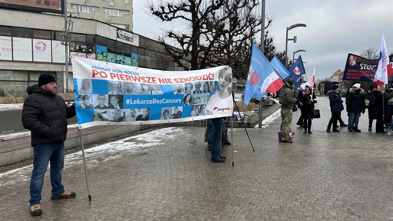 – Chcemy wyrazić sprzeciw środowisk patriotycznych, wolnościowych, Polaków, którzy chcą państwa wolnego od totalitaryzmu, od globalizmu, od WHO – mówił do zgromadzonych Marcin Sowiński, lekarz, prezes Stowarzyszenia Medycy Nadziei i członek Konfederacji Korony Polskiej. – Byliśmy wczoraj w Berlinie, rozmawialiśmy z posłami partii AFD. Ta partia ma w tej chwili ponad 20 proc. poparcia w Niemczech. Oni też nie chcą totalitaryzmu, wiedzą co się kryje pod nowym traktatem WHO.