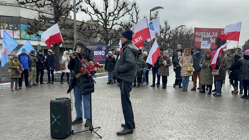 Dorota Rodziewicz ze Stowarzyszenia Nauczycieli i Pracowników Oświaty „Nauczyciele dla Wolności” zaznaczyła, że WHO powinno być zdelegalizowane. – Wszystko, co się kryje za tą organizacją, nie ma nic wspólnego z naszym zdrowiem i naszym dobrem – mówiła. – Jak się uważnie czyta zapisy tych umów, to widać wyraźnie, że tam nie chodzi o nasze zdrowie, o nasze bezpieczeństwo, tylko o cyfrową kontrolę i nasze pieniądze.
