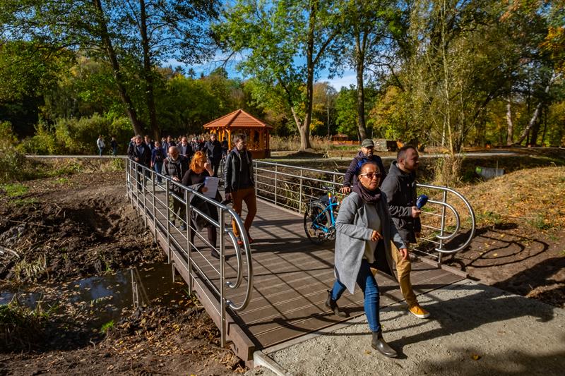 - Znajdują się tutaj blisko trzy kilometry szlaków dydaktyczno-przyrodniczych, trzynaście stacji postojowych, z czego trzy są nadwodne - mówiła Aleksandra Ciszewska, zastępca dyrektora Wydziału Gospodarki Komunalnej i Ochrony Środowiska Urzędu Miasta. - Odkryliśmy te zbiorniki wodne, które do tej pory mało kto był w stanie zauważyć. Mamy sporo tablic dydaktycznych, które już są zamontowane, a będzie ich jeszcze więcej.