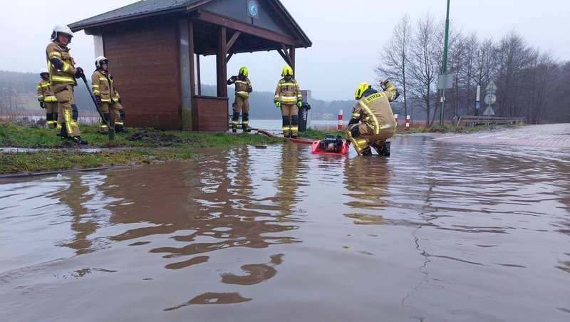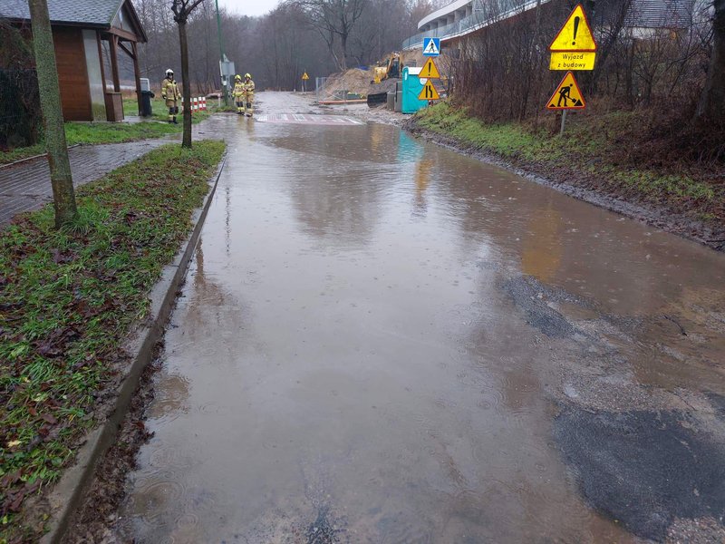 Na miejsce wezwani zostali strażacy z Ochotniczej Straży Pożarnej Kołczewo. Odpompowali oni wodę z ulicy, oczyścili jezdnię i udrożnili przejazd.