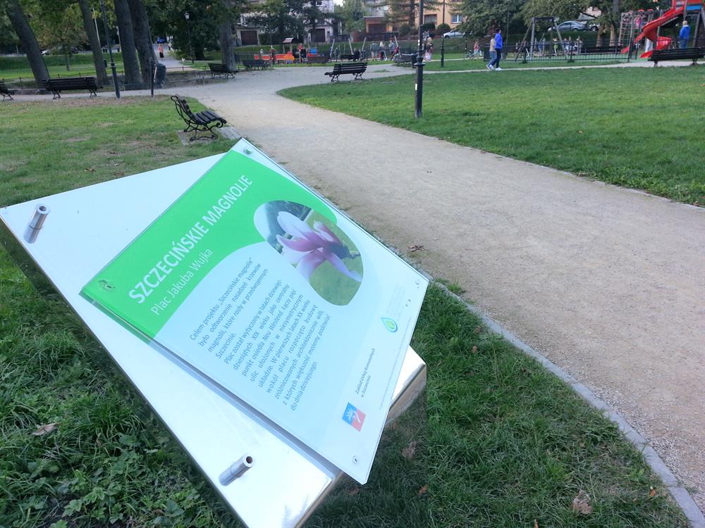Nic nie trwa wiecznie - zwykło się mawiać. Okazuje się, że w Szczecinie - jak na załączonym zdjęciu - nie jest w stanie nawet przetrwać jednego sezonu letniego taka oto tablica, jak ta ustawiona przy posadzonych niedawno magnoliach na odnowionym niemałym kosztem z budżetu miasta historycznym placu Ojca Jakuba Wujka na Pogodnie. Ukręcone ozdobne nakrętki na śrubach. Wandal był tak uprzejmy, że zostawił... jedną. Szklana tablica ledwo się trzyma. ©℗