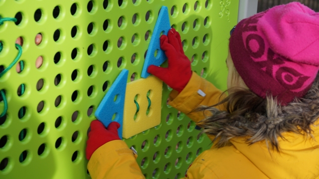Korzystanie z tej nietypowej instalacji to wspaniała zabawa pobudzająca nie tylko umiejętności manualne i kreatywność ale także aktywizująca społeczność lokalną, zarówno dzieci, jak i rodziców. „Dizajn ze sznurka” to panele do nauki techniki m.in haftu krzyżykowego lub szycia poprzez działanie w skali makro w przestrzeni miejskiej.