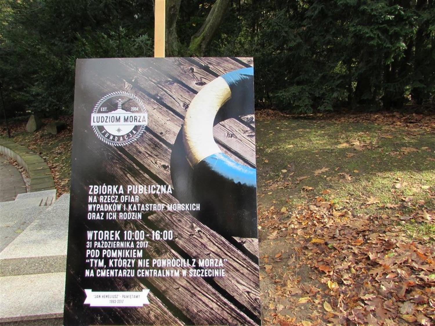 Fundacja „Ludziom Morza” po raz kolejny zorganizowała zbiórkę datków na rzecz poszkodowanych w morskich katastrofach oraz ich rodzin. Wolontariusze we wtorek (31 października) kwestowali - tradycyjnie - w pobliżu pomników „Tym, którzy nie powrócili z morza” oraz upamiętniającego ofiary tragedii promu „Jan Heweliusz” na Cmentarzu Centralnym w Szczecinie.