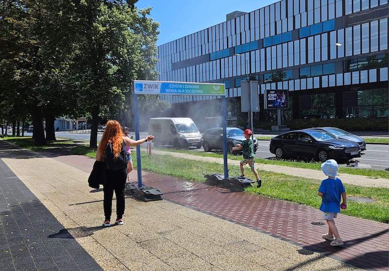 Dwie kurtyny wodne stanęły w centrum Szczecina. W upalne dni przechodnie mogą się schłodzić wodną mgiełką przy Oxygenie - ul. Malczewskiego oraz na pl. Adamowicza. Kurtyny uruchomił ZWiK.